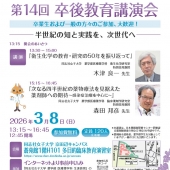 第14回卒後教育講演会を、2026年3月8日(日)13時15分~、京田辺キャンパスにて開催いたします。(参加費無料)今回の講演内容は以下のとおりです。― 半世紀の知と実践を、次世代へ ―12:45 開場13:15 開会のあいさつ 13:30~15:0…