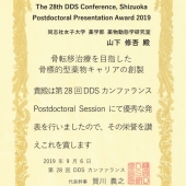 The 28th DDS Conference, Shizuoka Postdoctoral Presentation Award 2019の受賞について(薬物動態学研究…
